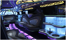 The ceiling is a whirlwind of rgb acrylic lighting, which changes colours every few seconds from, blue, pink, green, aqua, purple, yellow and white. The three extra long bars have been created with this same colour changing materials that reflect the vibrant colour onto the 16 champagne glasses. Guests also have the choice to select the neutral soft white lighting design if desired, all controls for the lighting selections, music, air-conditioning, privacy divider are located with the guests in the party section of this beautiful black hummer Perth.